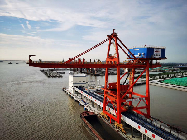 由杭州華新機(jī)電工程有限公司總包的一臺設(shè)計生產(chǎn)率為750t/h的螺旋卸船機(jī)總裝完成進(jìn)入調(diào)試階段。該設(shè)備用于國家能源集團(tuán)宿遷發(fā)電有限公司二期擴(kuò)建2×660MW超超臨界二次再熱機(jī)組工程。本工程位于宿遷市南偏東距市中心18km處的京杭大運(yùn)河南,二期新建碼頭共有4個泊位,配置兩臺螺旋式卸船機(jī)、兩臺16t清艙用港口門座機(jī)。
